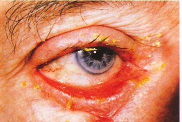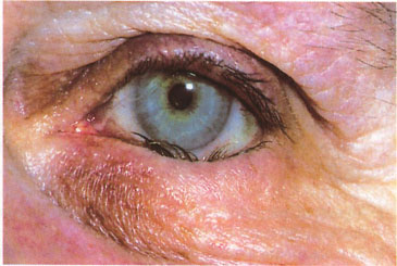 Pel que fa a les parpelles, la seva vora lliure pot quedar exposat cap a fora (ectropi), (fig. 4) afavorint-se les infeccions en augmentar la superfície d’exposició; o dirigir-se cap a dins (entropión) (fig. 5), fregant llavors les pestanyes de forma continuada sobre els epitelis corneo-conjuntivals i provocant severes queratitis cròniques. També poden observar-se disminucions de l’esquerda palpebral, per caiguda del superior (ptosis, que pot ser miogénica o neurogénica) (fig. 6) o bé augments de la mateixa, sent aquest el cas de les retraccions típiques de la oftalmopatía tiroïdal.